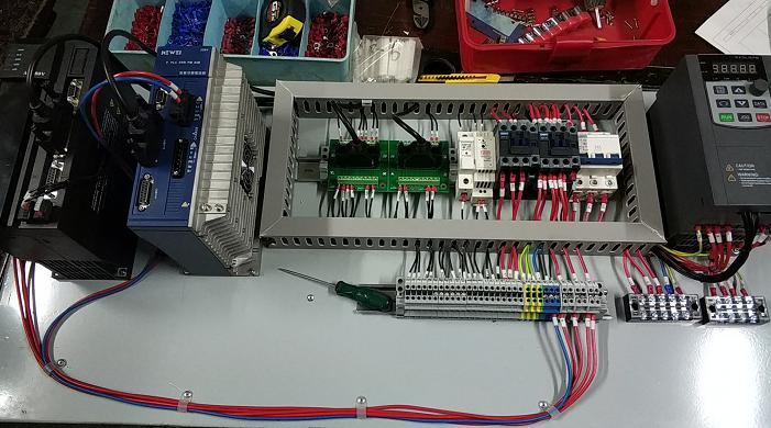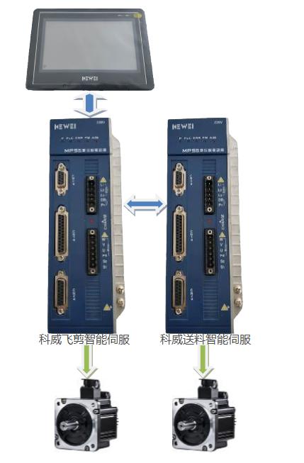 科威智能伺服集伺服驅(qū)動、PLC控制、運動控制于一體,正好適用于調(diào)直切斷機系統(tǒng)??仆悄芩欧{(diào)直切斷機系統(tǒng)方案為觸摸屏、飛剪智能伺服、送料智能伺服。