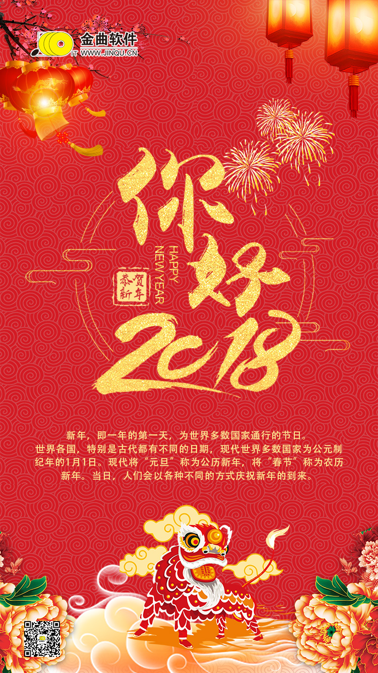 2017即將遠(yuǎn)去,2018已揮手相迎,在新的一年到來之際,上海金曲信息技術(shù)有限公司向所有關(guān)心和支持金曲軟件發(fā)展的每一位領(lǐng)導(dǎo)和新老客戶表示衷心的感謝!向一年來精心呵護(hù)金曲軟件成長的每一位員工致以新年的問候!在此佳節(jié),給所有關(guān)注金曲軟件成長的您送上最美好、最真摯的祝福!祝您2018年新年快樂,幸福安康!