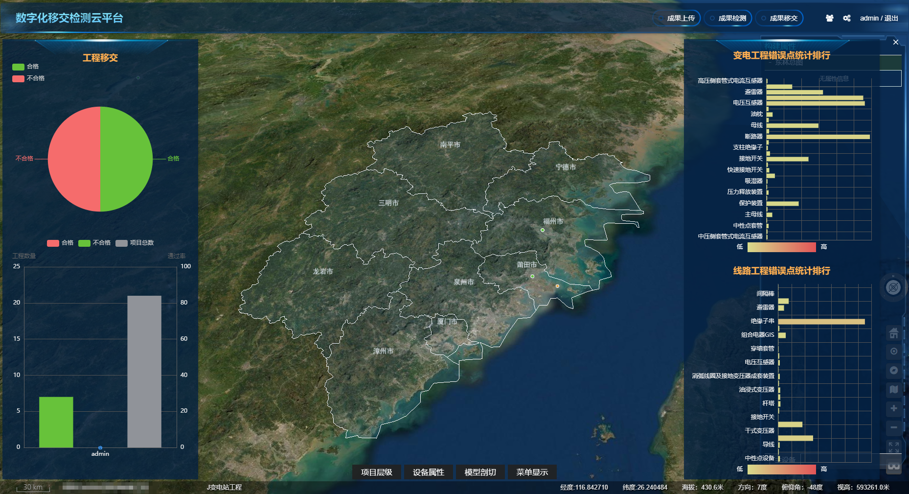支撐增量展示全省數(shù)字化移交的工程情況,直觀分析移交工作情況,含移交質(zhì)量分類分析,錯誤要點統(tǒng)計排行等。