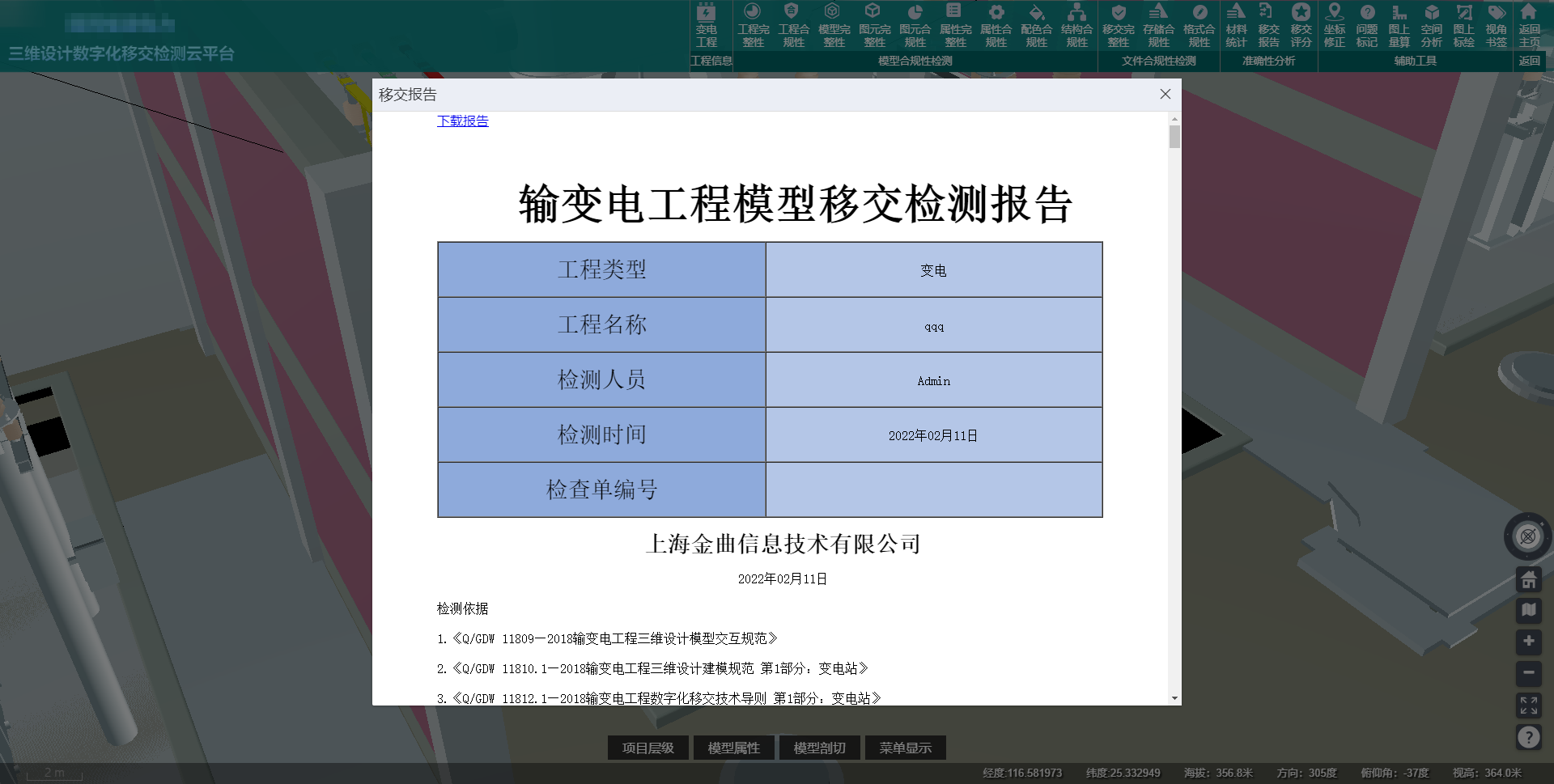 針對“數(shù)字化移交”工作的現(xiàn)狀,我司推出“金曲三維數(shù)字化移交檢測軟件”。軟件完全按照輸變電工程三維設計系列規(guī)范要求研發(fā)而成。軟件具備數(shù)字大屏、流程管理、一鍵上傳、模型查看、規(guī)范智檢、圖紙關(guān)聯(lián)等功能并可無縫對接工程數(shù)據(jù)中心,可協(xié)助移交單位快速完成變電站(換流站)、架空輸電線路工程的上傳、檢測、審查、移交等工作。切實優(yōu)化三維移交的流程,解決三維移交過程中的痛點,有效提高三維移交的效率。