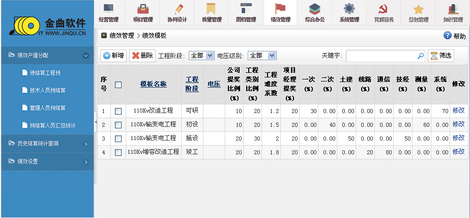 針對收資模板、任務(wù)模板、提資模板、歸檔模板進行管理。